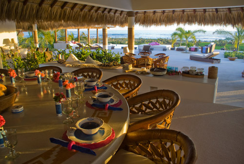 Large dining room for 18 people with ocean, jungle and mountain views, main table seats 14 people