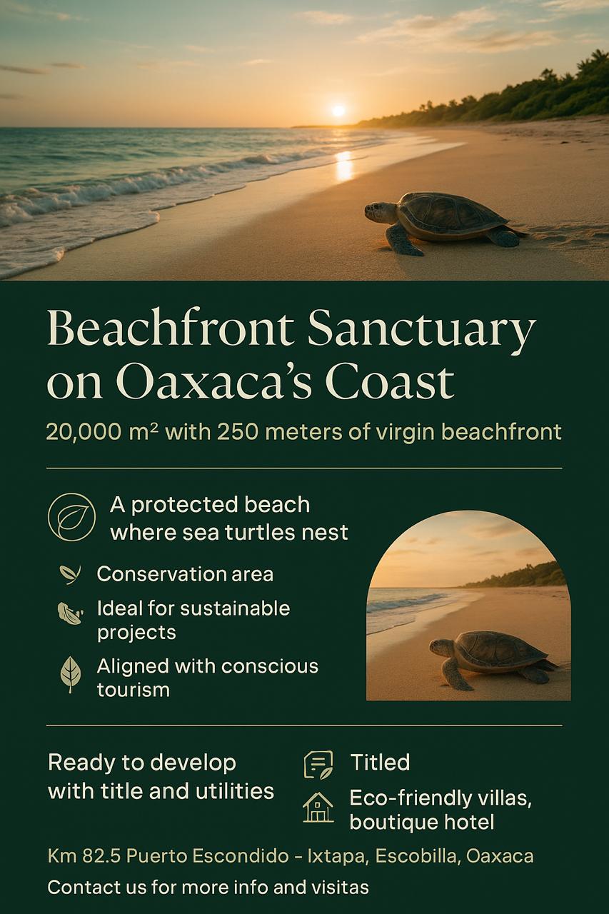 Looking for the perfect place to bring your vision to life? This 20,000 m² parcel of land in Puerto Escondido is more than just property—it’s a unique opportunity to invest in one of the fastest-growing destinations in Mexico.