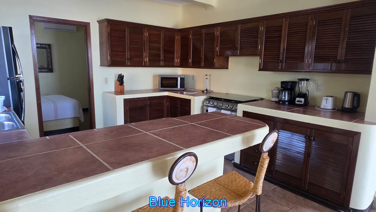 | 1 | Full gourmet kitchen table service for 8, Breakfast Bar, Blender, Toaster, Microwave, Stove-top Grill |