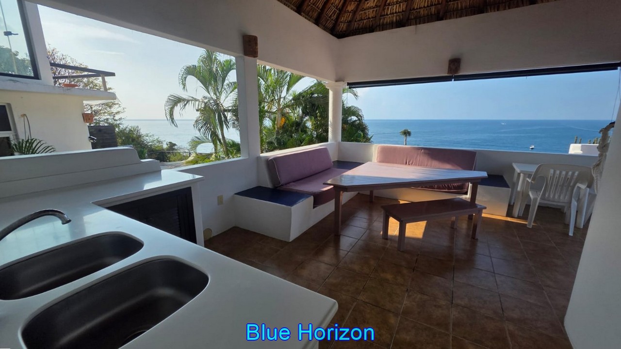 | 1 | Large Palapa Covered Patio/Living Room. 2 Built-in Couches with Cushions, Open Air Dining Table, Wet bar, Sink, Mini-Refrigerator |